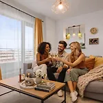 The property offers a balcony, a sitting area, and a living room with views of the city and comforts like an air conditioner. This apartment is equipped with a bathroom that features hair dryers, bath sheets, and bathrobes. You'll also come across a separate toilet and a shower.